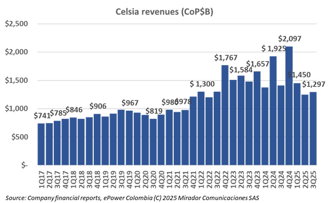 Read moreCelsia Colombia S.A. E.S.P. reported mixed results for the third quarter of 2025, reflecting the shifting conditions of Colombia’s energy market as the country moves beyond the effects of El Niño and faces lower spot prices.