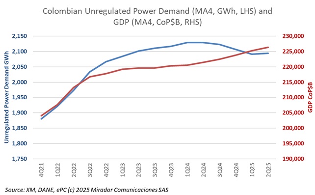 Read moreColombia’s statistical institute, DANE, updated its GDP estimates for the second quarter and so we updated our estimates of energy intensity and income elasticity. We also updated our forecasts to discuss the issue of blackouts in 2026.