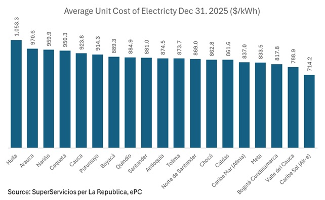 Read moreHuila and Arauca lead Colombia's departments with the most expensive electricity rates, a situation that could worsen with the Ministry of Mines and Energy's draft decree proposing a temporary CoP$8/kWh surcharge for National Interconnected System (SIN) users.